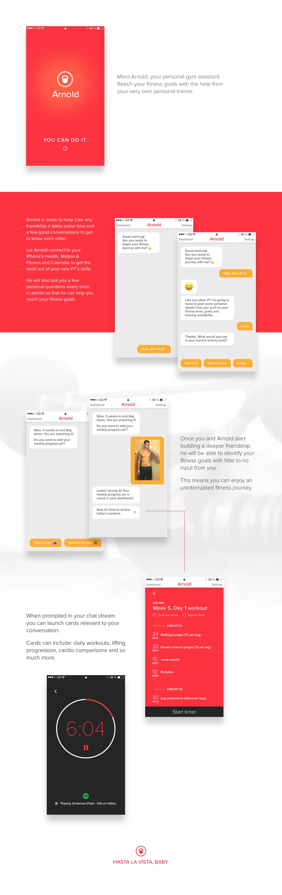Step 2: Branding. I'm not a brand designer so I took a simplistic approach with the clever idea of basing the app around a personal trainer called "Arnold". Ring a bell? ;) I picked a colour palette that was vibrant and inspired getting out and being active.